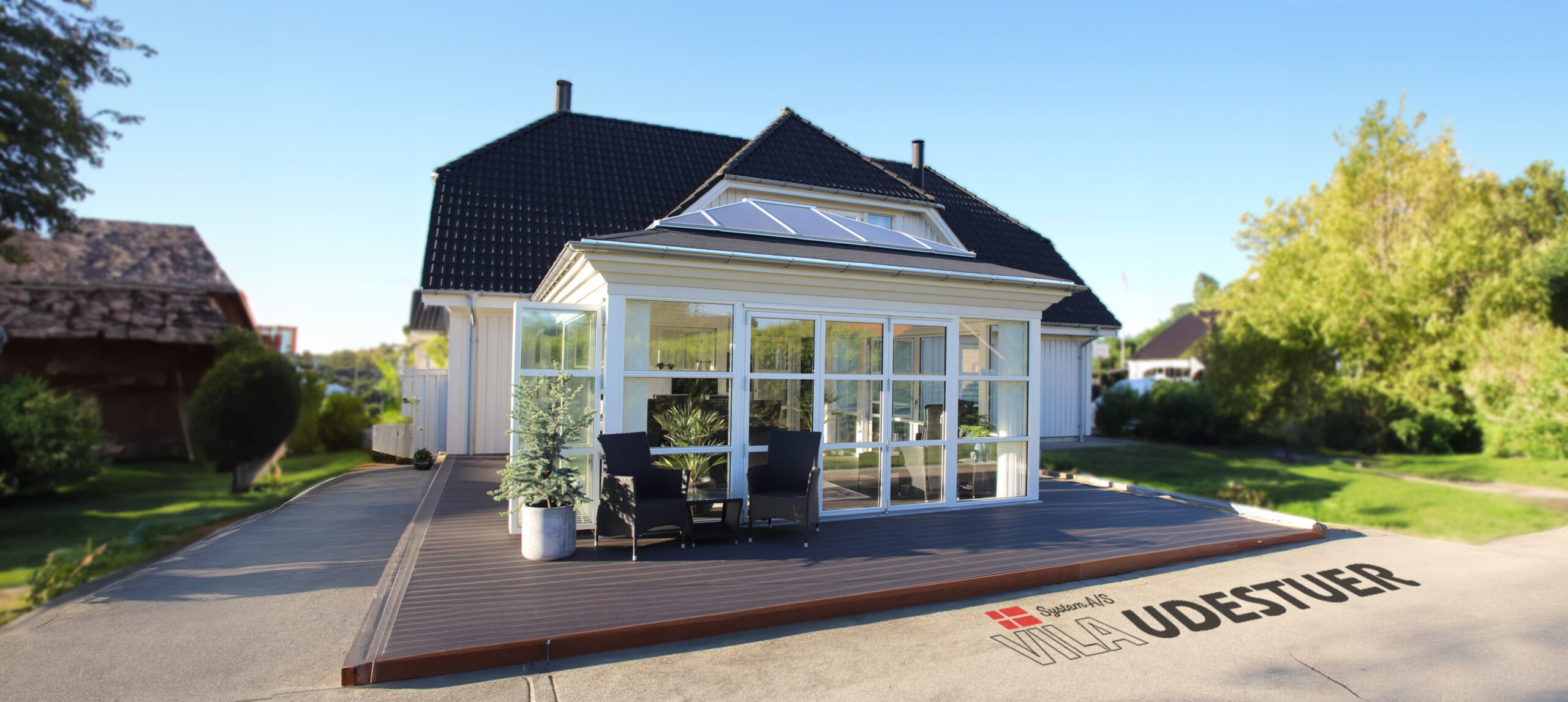 Vores ruder har en lav U-værdi, hvilket i praksis betyder at varmen bliver inde om vinteren og holdes ude om sommeren. Det er forskellen på en udestue du bruger tre måneder om året og en du bruger tolv.